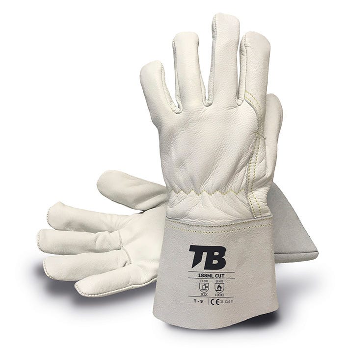 A aba para o polegar permite a abertura total da mão, minimizando a tensão muscular e melhorando o conforto e o ajuste. O couro de cabra promove a respirabilidade, prevenindo irritações causadas pelo acúmulo de suor. Altamente resistente à abrasão. O interior é forrado com fibra de vidro aramida, aumentando a proteção contra cortes e calor. Ideal para contato repetido com calor residual ou radiante. A costura com fio de aramida aumenta a durabilidade da costura contra lacerações e desgaste causados ??por objetos pontiagudos ou fricção.