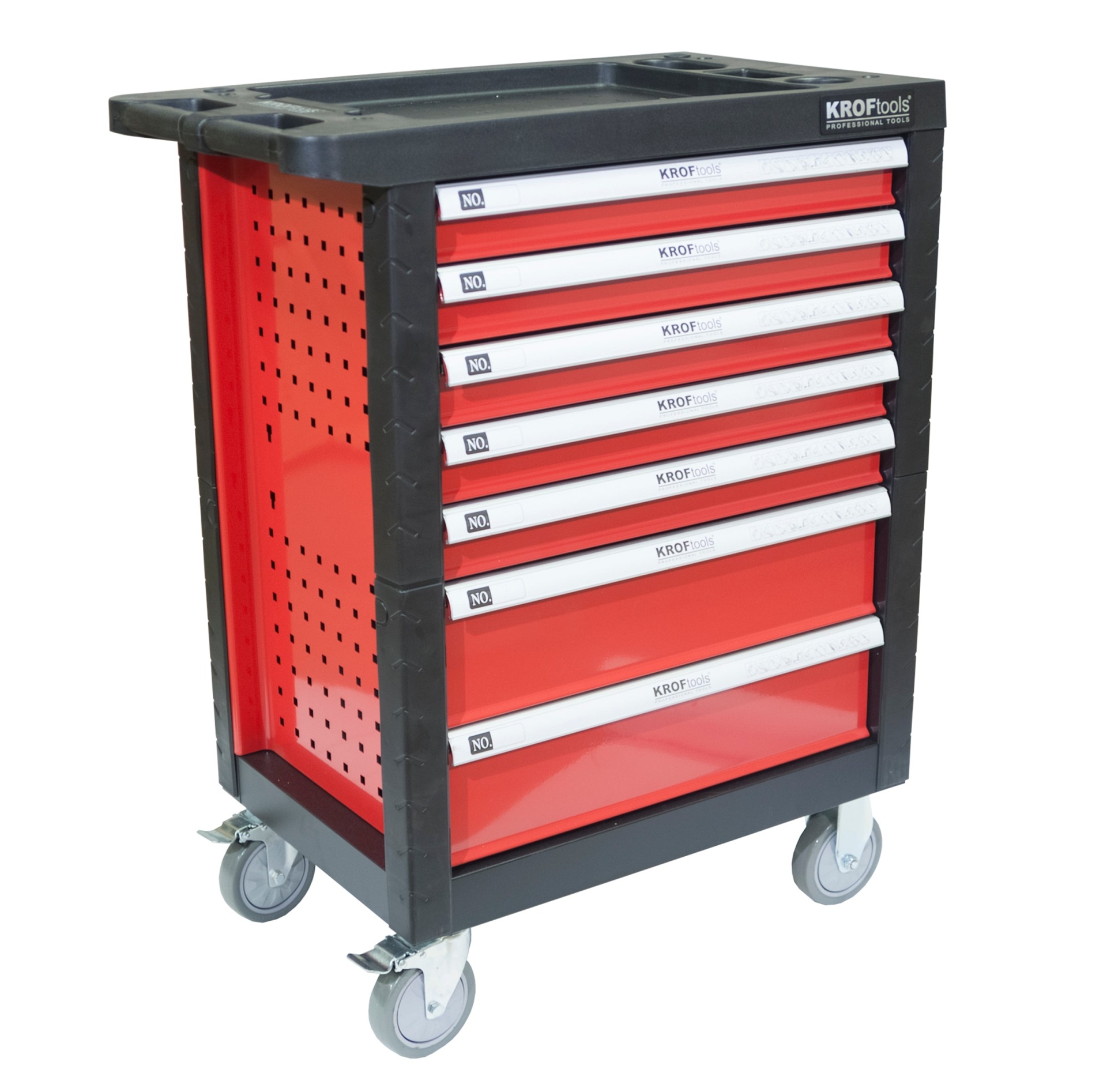 Dimensões carro: Comprimento - 765mm Comprimento sem tampo - 685mm Largura - 460mm Altura sem roda - 820mm Altura com roda - 970mm Dimensões gavetas: (5x) Gaveta S: 538 x 397 x 67mm (1x) Gaveta M: 538 x 397 x 125mm (1x) Gaveta L: 538 x 397 x 145mm Referência: 8611 _ Preto Referência: 8611_ Vermelho