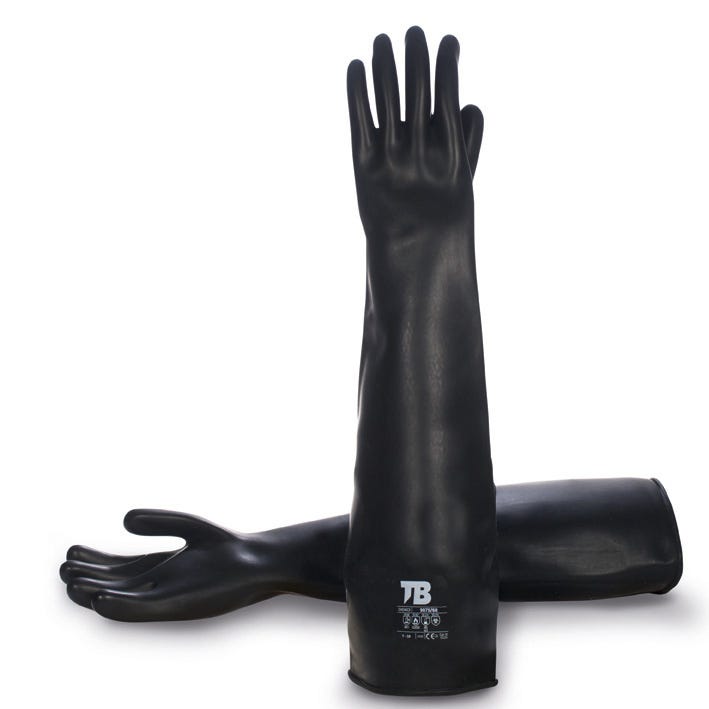 Composição: Luva preta de látex natural. Interior clorado. Punho enrolado. Espessura: 1,3 mm. Comprimento total: 60 cm.