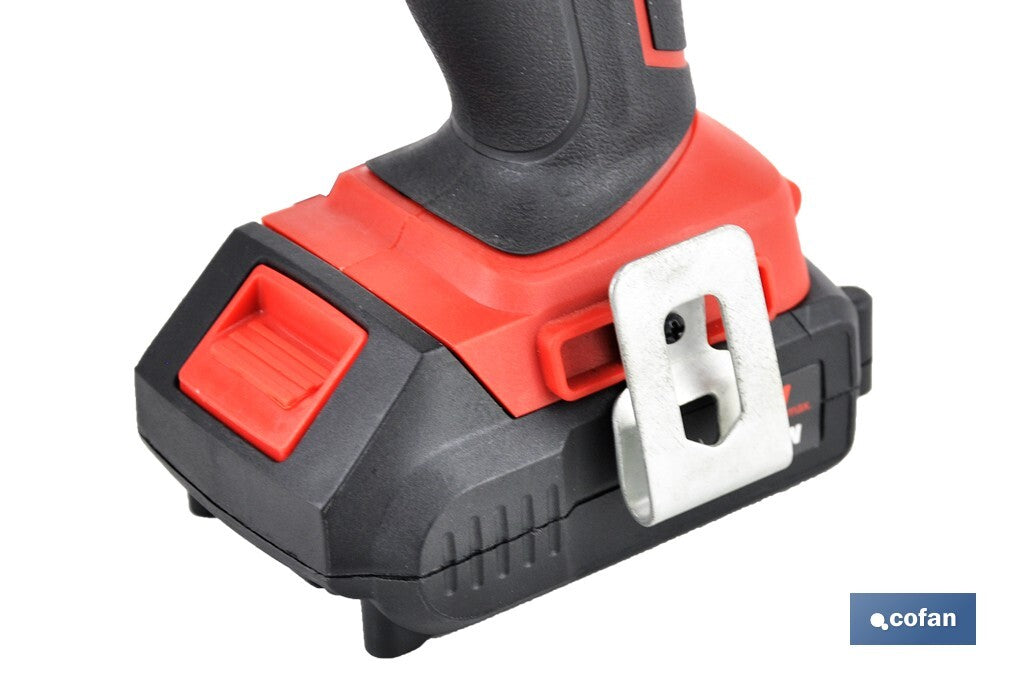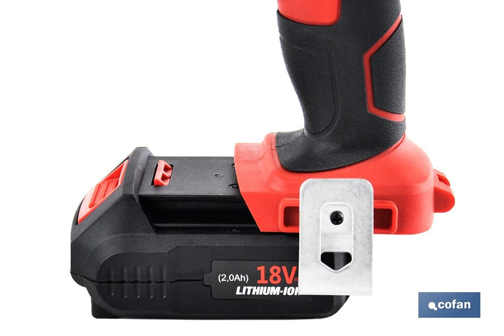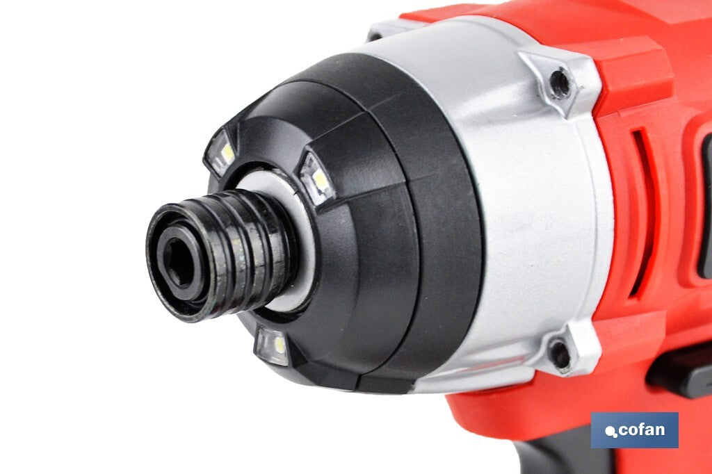 Aparafusadora percurtor de impacto 1/4 Bateria de lítio de Li-íon. Dispõe de controle de velocidade variável 0-2000 rpm e seletor de rotação esquerda/direita. Com 3 luzes de trabalho LED e clipe de metal para suspensão no cinto Inclui mala com acessórios (4 pcs.) mais carregador de bateria de 18V.