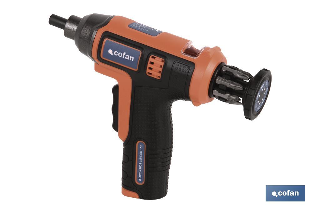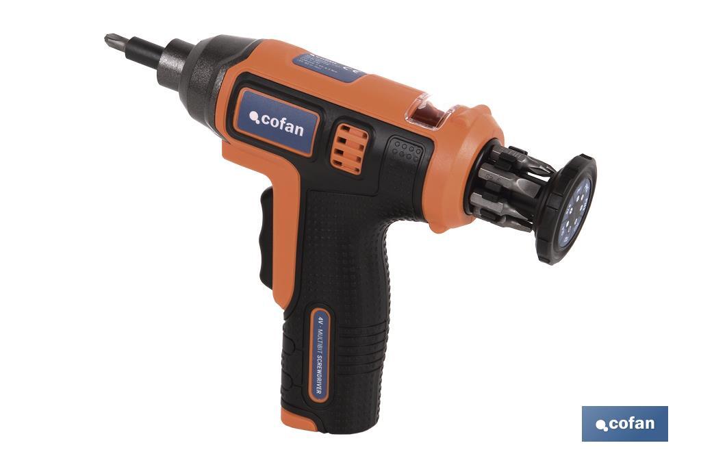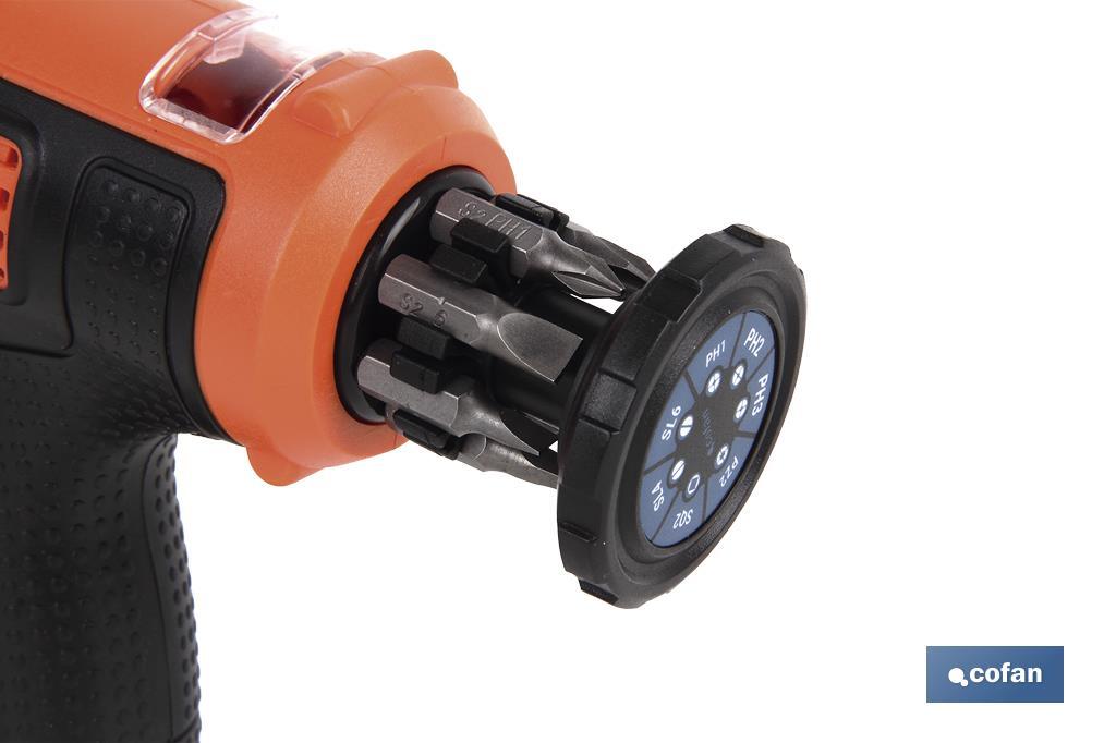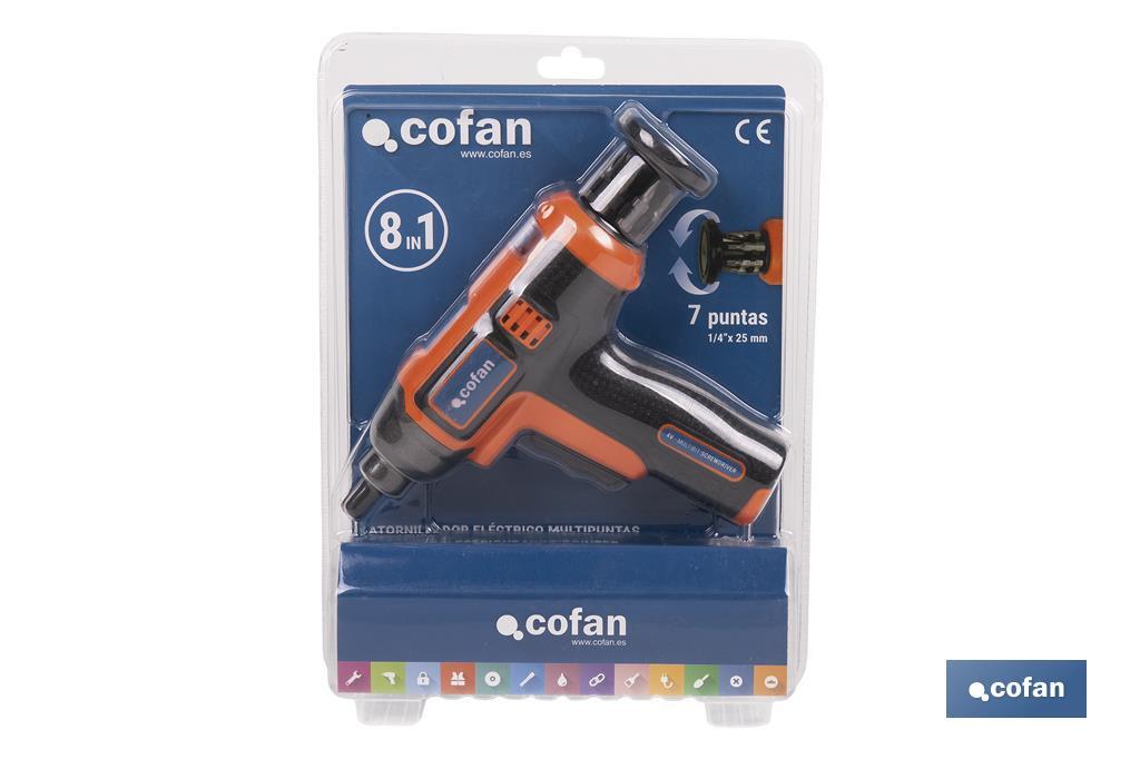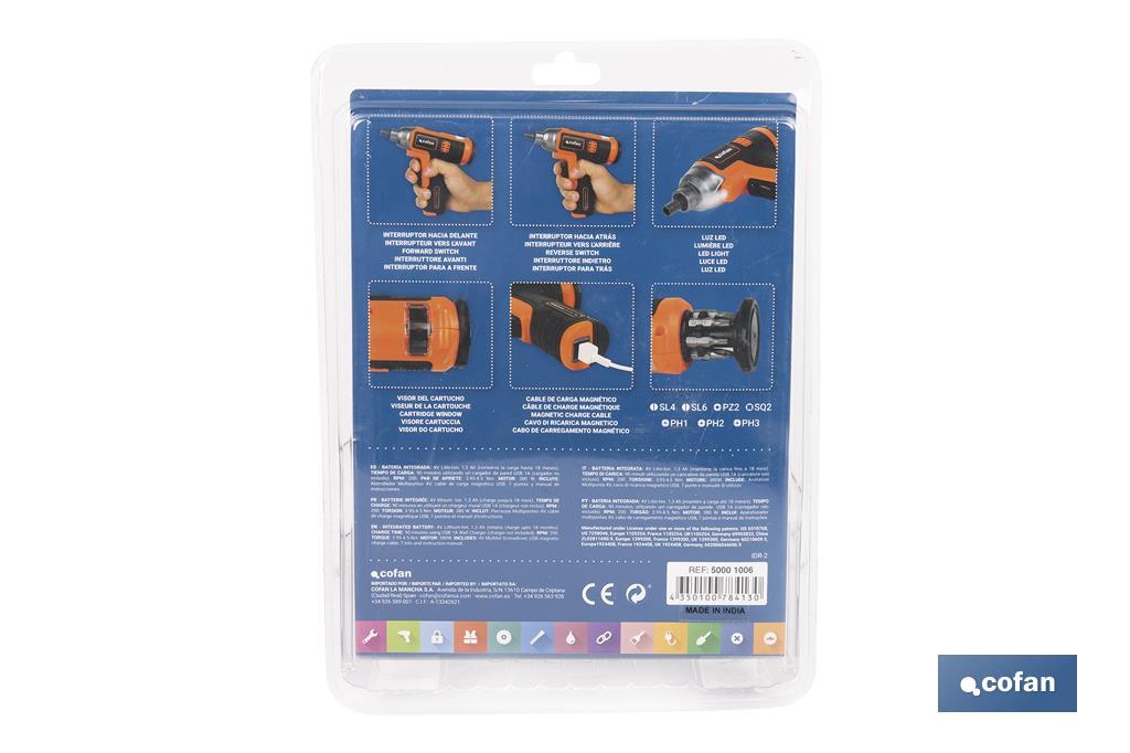 APARAFUSADOR ELÉTRICO MULTIPONTAS COM BATERIA DE LÍTIO QUE CONSERVA A CARGA ATÉ 18 MESES, COM CABO DE CARGA MAGNÉTICO USB E 7 PONTAS. Nº REI-RAEE DE COFAN LA MANCHA 7038.