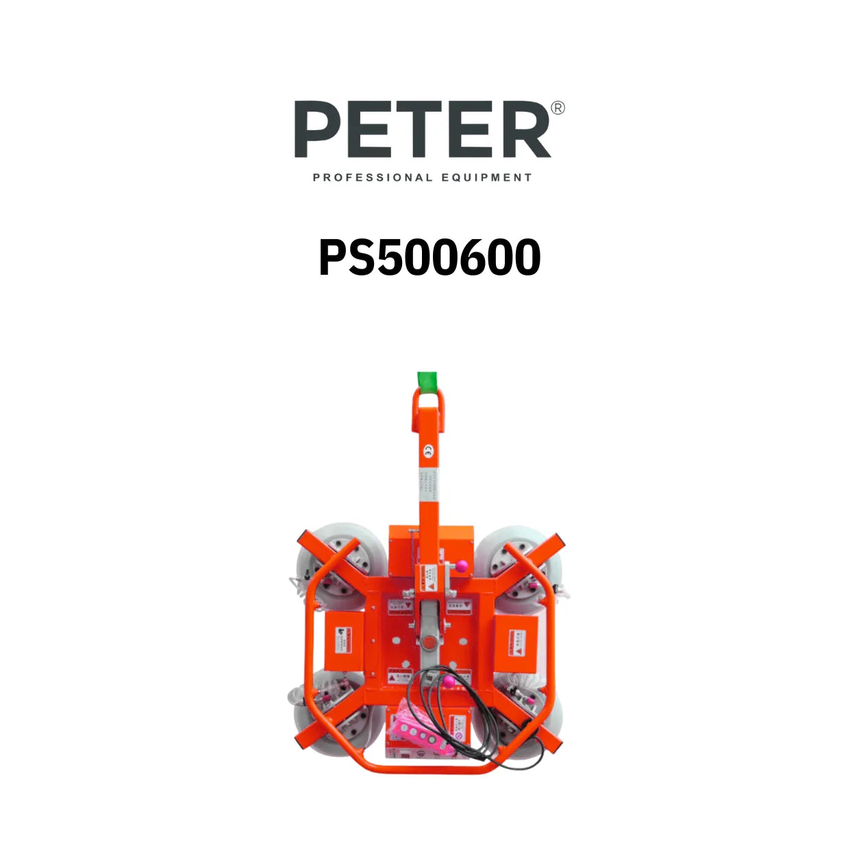 O PS500600 da PETER é um elevador de vidros a vácuo elétrico de alta capacidade, desenvolvido para o manuseamento seguro e eficiente de vidros, vidraças e chapas. Equipado com 6 ventosas de Ø300 mm, garante uma fixação firme e estável em todo o tipo de superfícies lisas, tornando-se uma solução versátil e indispensável para a indústria de caixilharia e janelas.