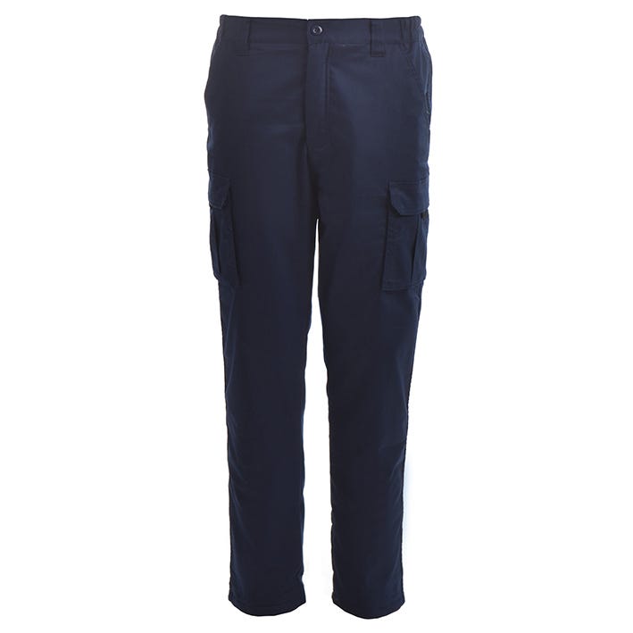 Calças. Corte justo. Fecho central com zíper e botão. Cós elástico com presilhas anti-rasgo. Costura dupla de segurança na parte externa. Dois bolsos frontais tipo francês. Dois bolsos laterais com reforço frontal e lateral, abas, fechos de velcro e puxadores. Dois bolsos traseiros aplicados com abas, fechos de velcro e puxadores. Lavar à máquina a uma temperatura máxima de 30 °C. Passar a ferro em temperatura baixa. Não usar alvejante. Não lavar a seco. Não secar na secadora. Máximo de 25 ciclos.