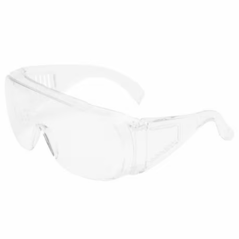 Óculos de proteção para visitantes com lentes leves em policarbonato, proteções laterais moldadas e proteção de sobrancelhas; podem ser utilizados individualmente ou sobre óculos de proteção graduados de estilo atual.
