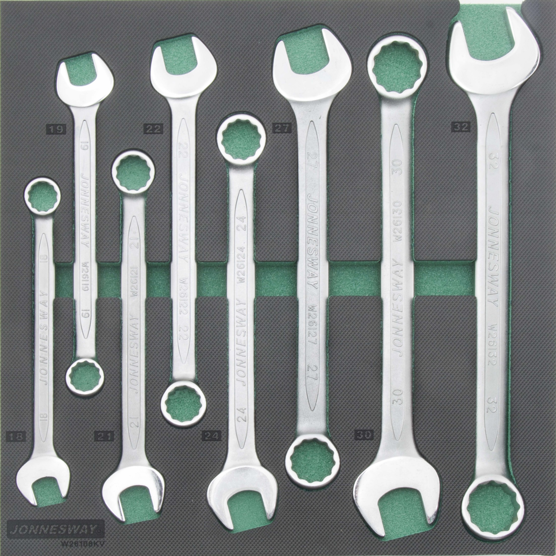 Tabuleiro com 8 chaves boca/luneta Composição Chaves: 18; 19; 21; 22; 24; 27; 30 e 32mm Ref.: W26108KV